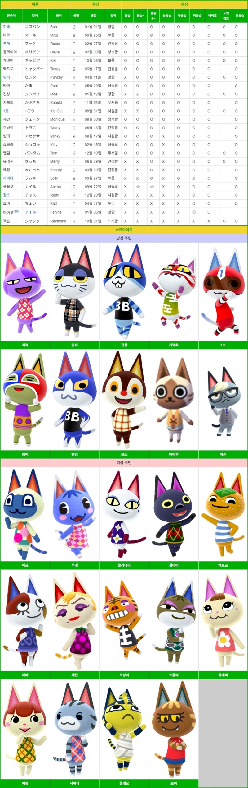 모여봐요 동물의 숲 주민 리스트 성격별 (먹보/운동광/무뚝뚝/친절함/아이돌/성숙함/단순활발) ��