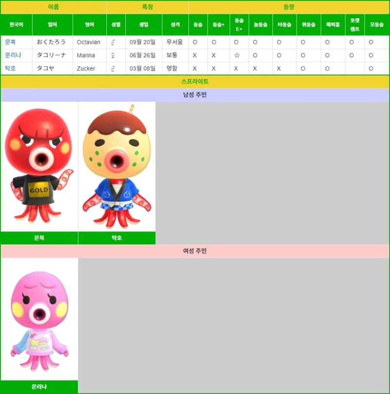 모여봐요 동물의 숲 주민 리스트 성격별 (먹보/운동광/무뚝뚝/친절함/아이돌/성숙함/단순활발) ��