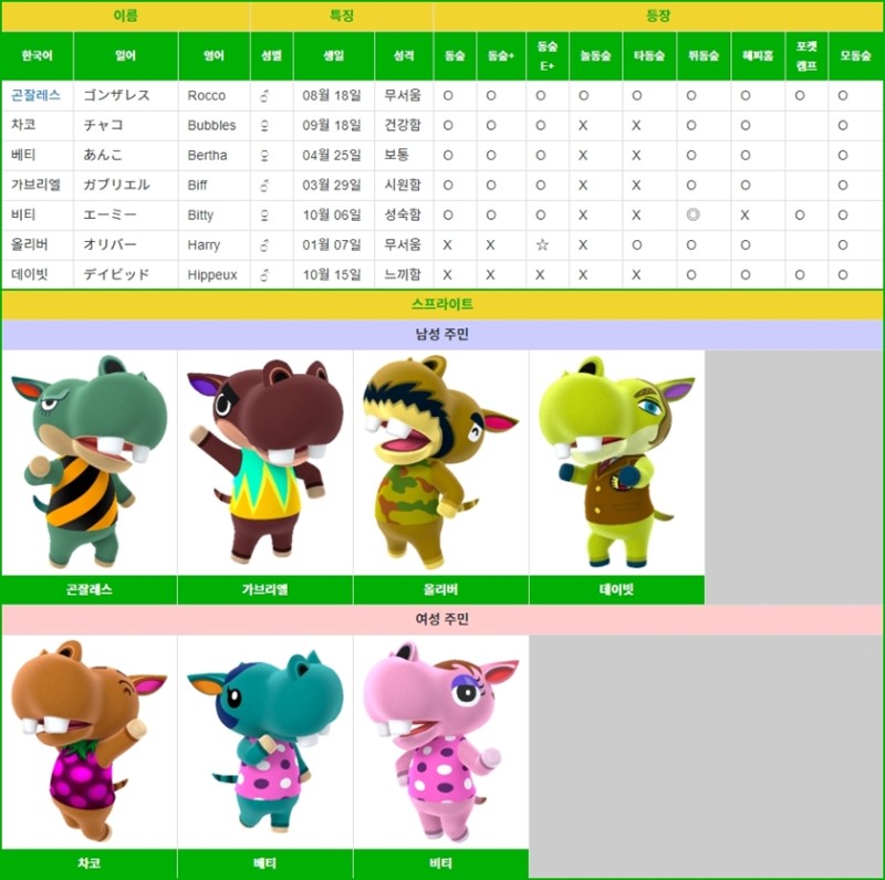 모여봐요 동물의 숲 주민 리스트 성격별 (먹보/운동광/무뚝뚝/친절함/아이돌/성숙함/단순활발) ��