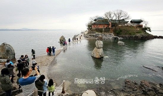물이 들어오면 작은 섬, 물이 빠지면 길이 생기는 간월암