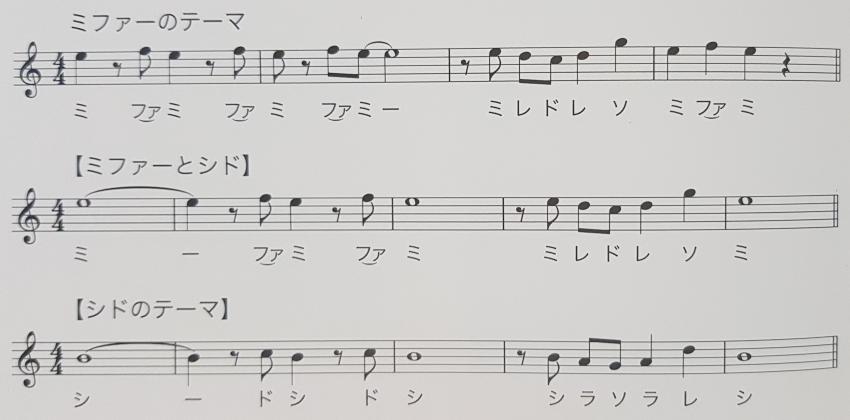와카이 - "그렇게 만드는 게 당연하겠네."라고 생각했습니다. 애초에 [시드의 테마]는 시와 도로 구성되어있는 곡이고 미파의 테마는 미와 파로 구성되어있습니다. [미파와 시드]는 [시드의 테마]를 미파로 구성한 것이군요. 확실히 그 곡은 시드의 관점에서 본다면 미파가 영웅이겠다고 생각했죠.