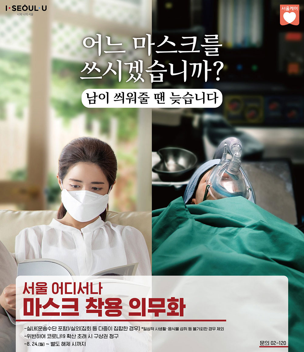서울시가 마스크 착용 의무화에 따른 세부지침을 전국에서 처음으로 마련했다. 시민들이 일상생활 곳곳에서 바로 적용할 수 있도록 시 및 코로나19 전용 홈페이지를 통해 배포했다. 쉬운 이해를 돕기 위한 Q&A 사례집도 함께 만들어 배포했다.