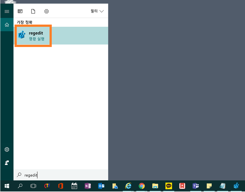윈도우 키 입력 - regedit 검색 - regedit 실행