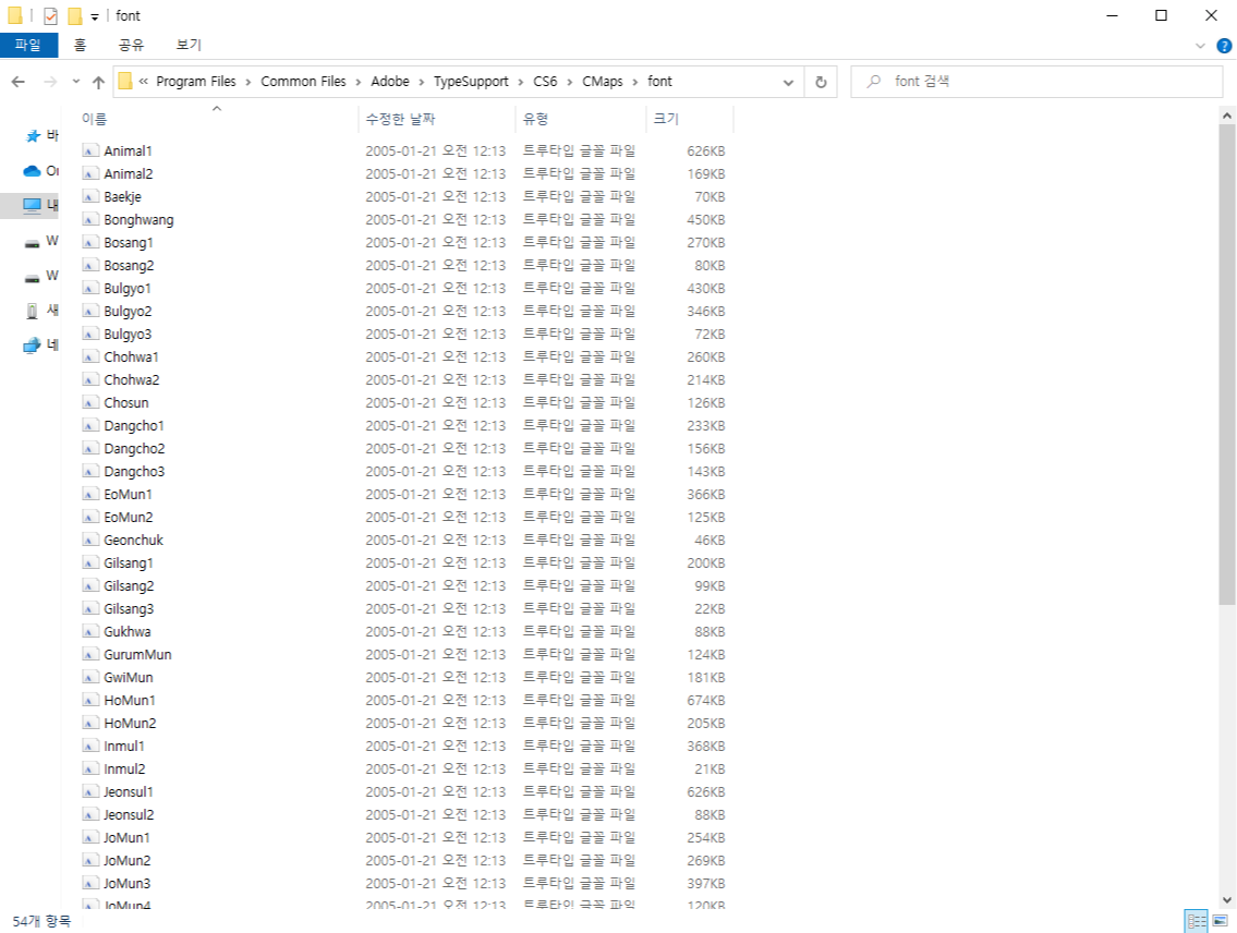 윈도우의 경우 많은 분들이 폰트 파일을 그냥 C:\Windows/fonts 폴더 안에 전부 넣어 사용합니다. 그러나 이 경우 점점 컴퓨터가 느려지는 단점이 있기도 하고 폰트 세팅이 뒤섞이는 부분도 있죠. 또 그래픽 작업 등을 제외하면 쓸 일 없는 폰트들이 윈도우 os 로딩에 영향을 미치게 되고 지저분하기도 합니다. 따라서 Adobe 제품군에서만 쓰는 폰트는 하위 폴더에 따로 넣어서 사용이 가능합니다.