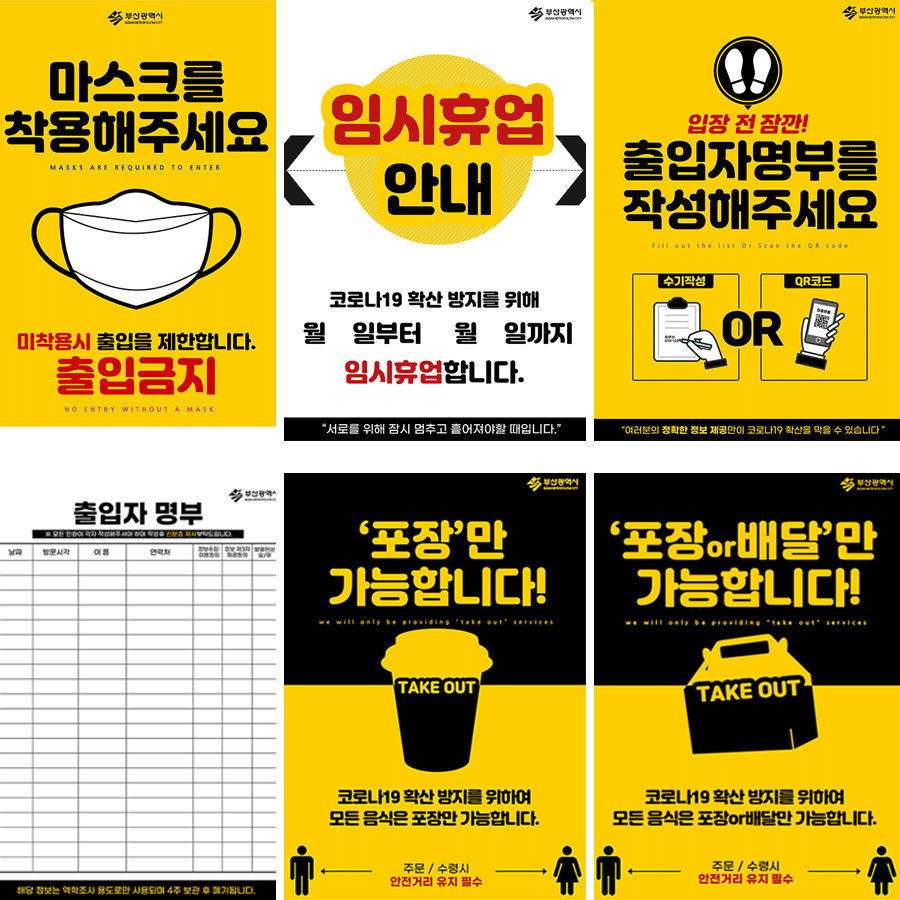 부산광역시 공식 로고가 함께 출력되니 해당 포스터 부착시 손님들께 안내 설명 드리기도 더 편리할 듯합니다.