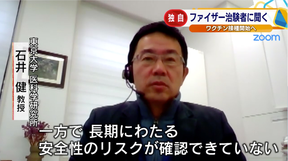 한편, 백신 연구 전문가로 FDA(*미국 식품 의약국)에서 백신 심사에 참여한 도쿄 대학 의과학 연구소, 백신 과학 분야의 이시이켄 교수는 백신 안전성에 대해 주의도 필요하다고 말했습니다.