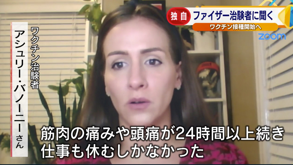텔레비전 도쿄에서 미국에서 화이자 백신 임상 실험에 참가한 35세 여성의 이야기를 취재했는데요.