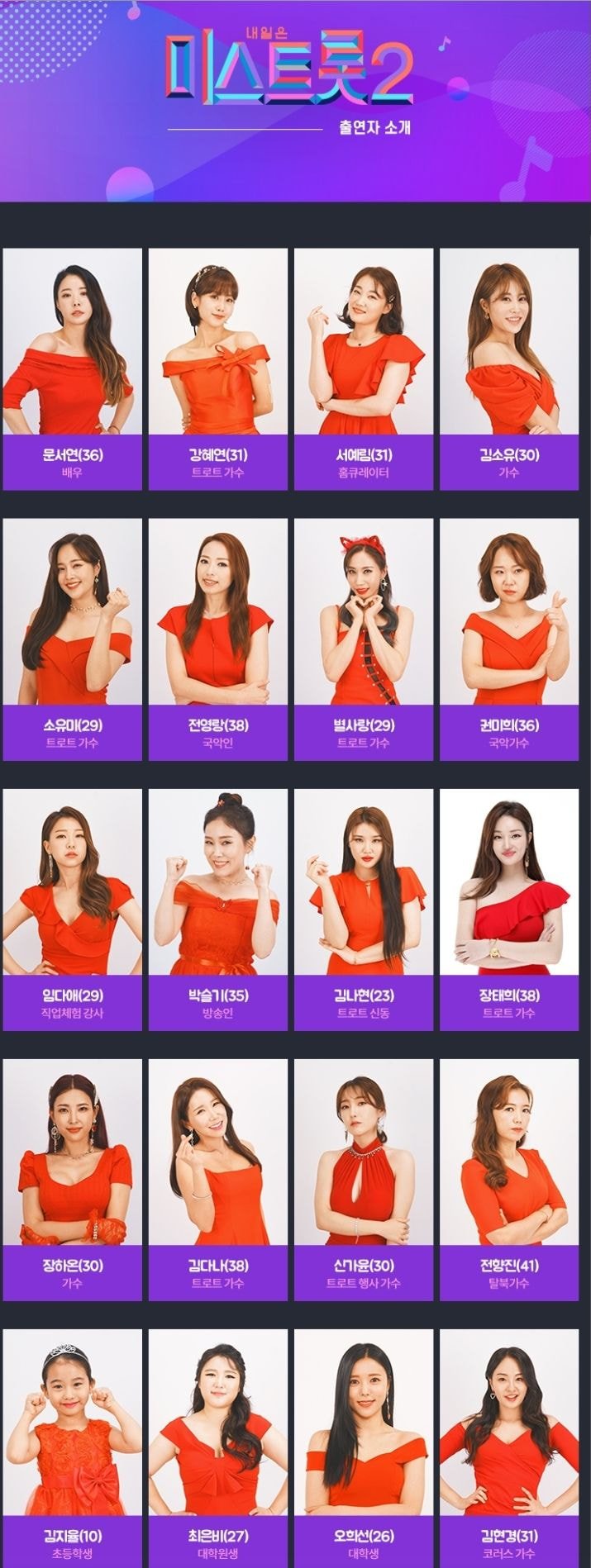 미스트롯2 출연자 프로필 궁금하시죠.