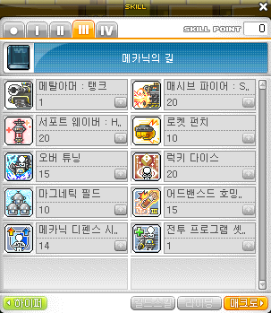 어드밴스드개틀링샷1 ---> 호밍미사일1 ---> 메카닉마스터리5 ---> 메카닉부스터M --->