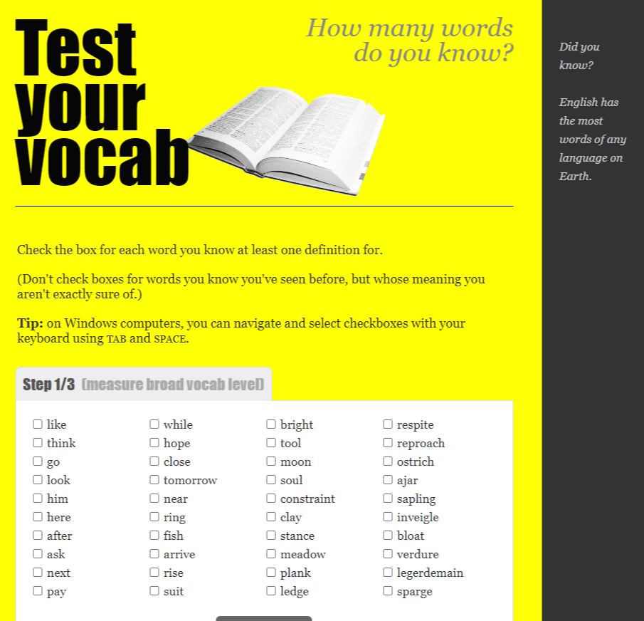 1. testyourvocab.com 에서 단어실력을 테스트 한다. (Step3은 스킵가능)