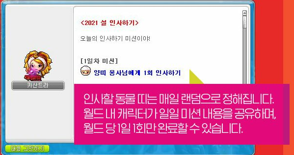 2. [설날]인사하기 일일미션 퀘스트를 카산드라에게 받기