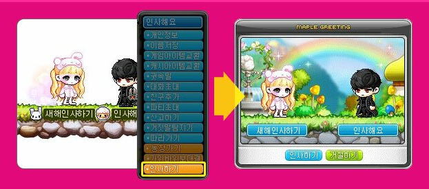 자기 띠 선택후에 인사하라는 띠 만나서 인사하면