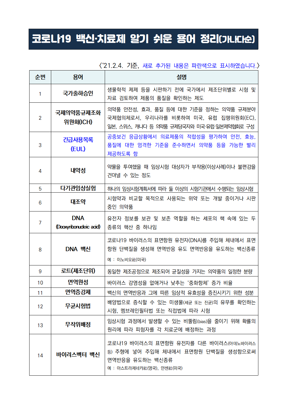 최근 식품의약품안전처에서 직접 코로나19 백신, 치료제 정보를 제공하고 있습니다.