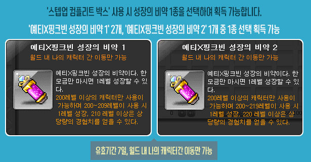 200렙 찍고 스텝업미션 다 깨고 받는 박스 안에는 핑크빈 성장비약