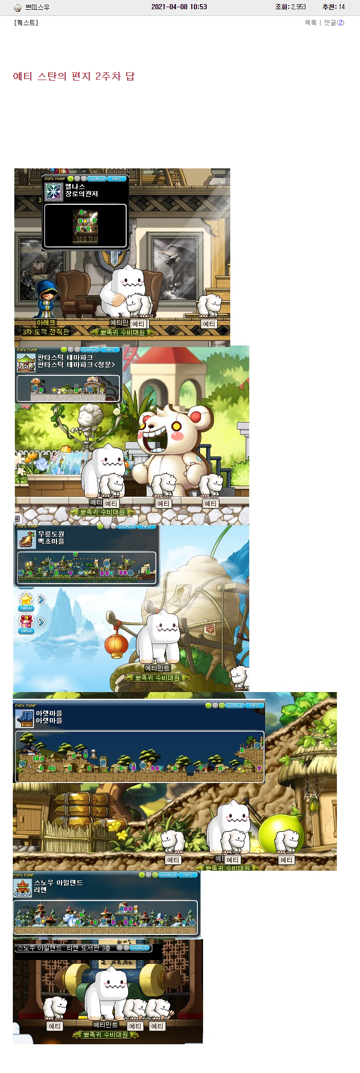 | 메이플스토리 명탐정 페페 10일차 정답 + 히든퀘 (0) | 2021.03.22 |