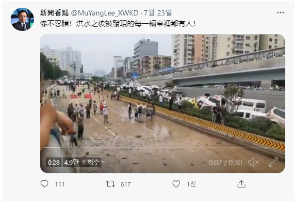 상하이당 펑펑뉴스에서는 최초에 수천개의 차량이 침수되었다 보도했고,