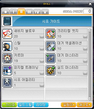 쉴드 마스터리 10 -> 크리티컬 엣지 10 -> 스틸 10 -> 새비지 블로우 20