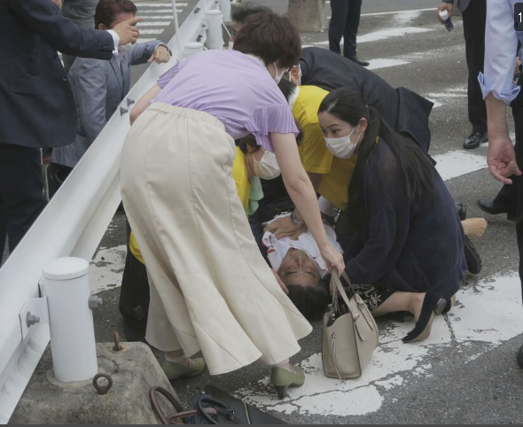연설하다 총을 맞고 쓰러진 아베 신조 총리