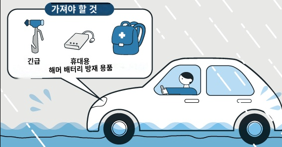 차는 생각보다 물에 약한 것. 주행 중에는 물의 깊이를 알기 어려워 위험을 감지하지 못할 수 있습니다. 폭우 예보가 있다면 차를 타지 마십시오.
