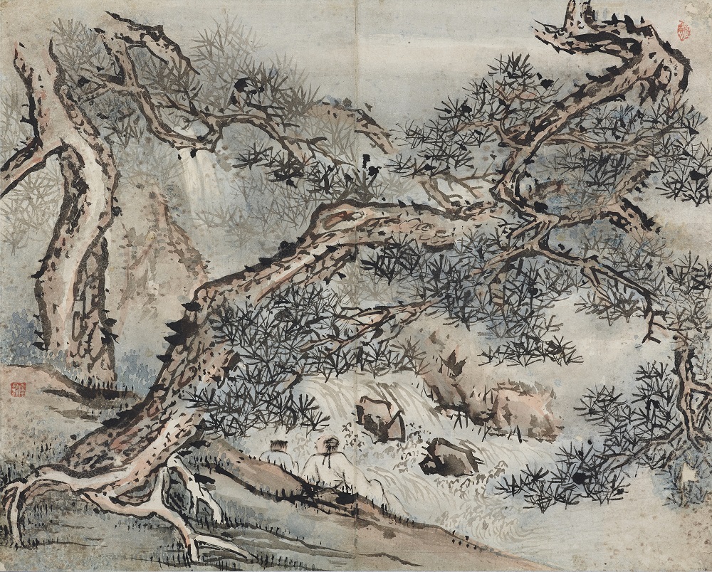 이인문, <송하관폭도(松下觀瀑圖)>, 18세기, 종이에 연한 색, 36.5×29cm, 삼성리움미술관
