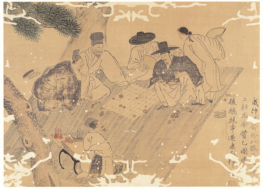 조선 후기의 선비 화가 관아재(觀我齋) 조영석(趙榮祏, 1686~1761년)이 그린 〈현이도(賢已圖)〉를 보면 부채가 지체 높은 선비들만의 전유물이 아니었음을 알 수 있다. 이 그림에서는 선비들이 소나무 아래서 장기를 두고 있는데 구경꾼 중 갓을 쓴 양반과 떠꺼머리총각이 부채를 들고 있다. 더위를 피해 시원한 나무 그늘을 찾아서 장기판을 벌인 것을 보면 단오가 지난 여름임을 알 수 있다. 그런데 장기판이 벌어진 바닥에는 멍석이 깔려 있다. 멍석은 짚으로 엮어 만든 깔개로 사람들이 앉거나 곡식을 너는 용도로 쓰였다.