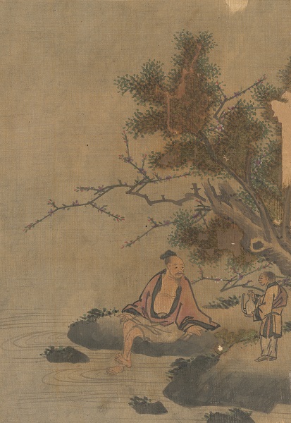 이경윤, <고사탁족도(高士濯足圖)>, 16세기, 마에 연한 색, 27.8×19.1cm, 국립중앙박물관