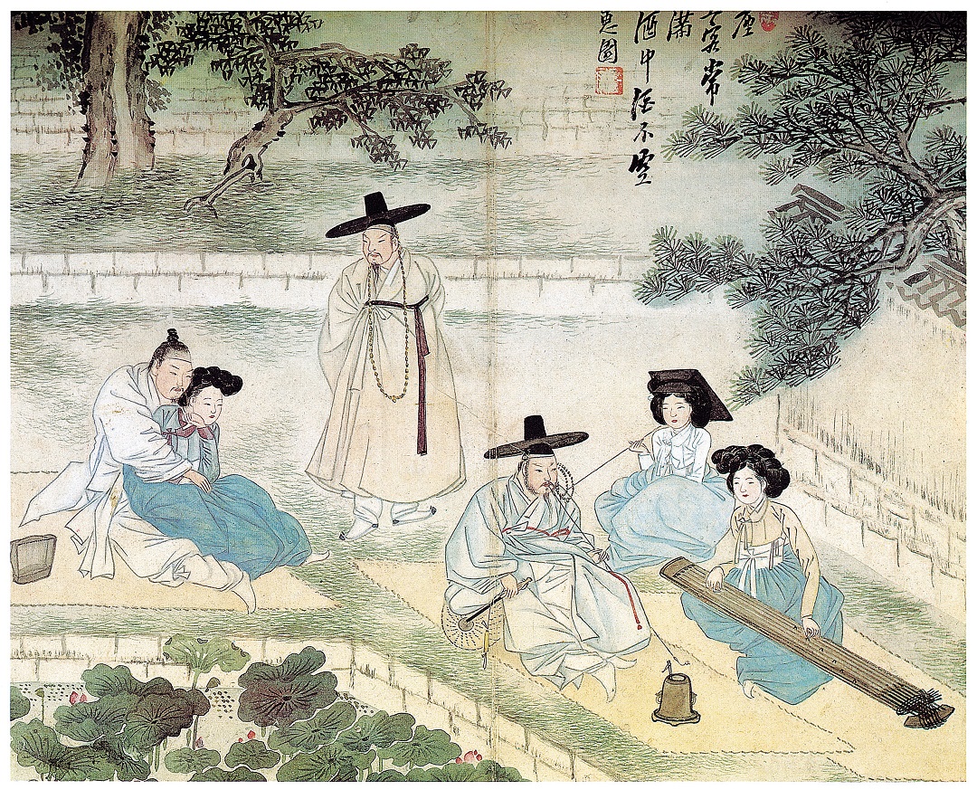 신윤복, <연당야유도(蓮塘野遊圖)>, 18세기, 종이에 연한 색, 28.2×35.2cm, 간송미술관