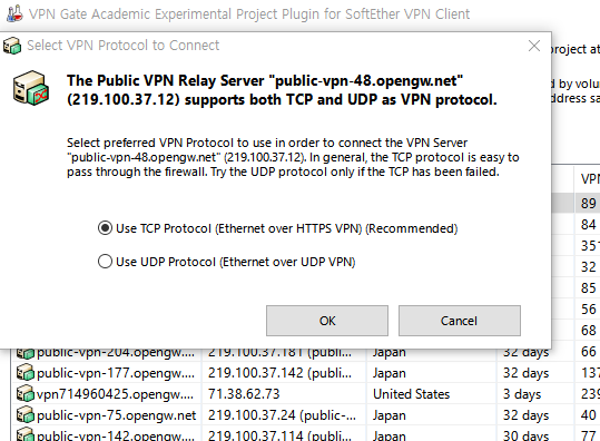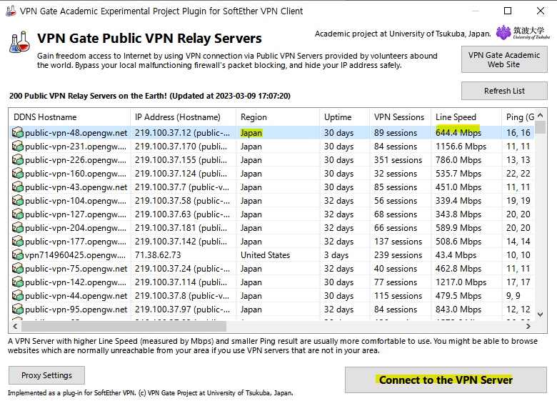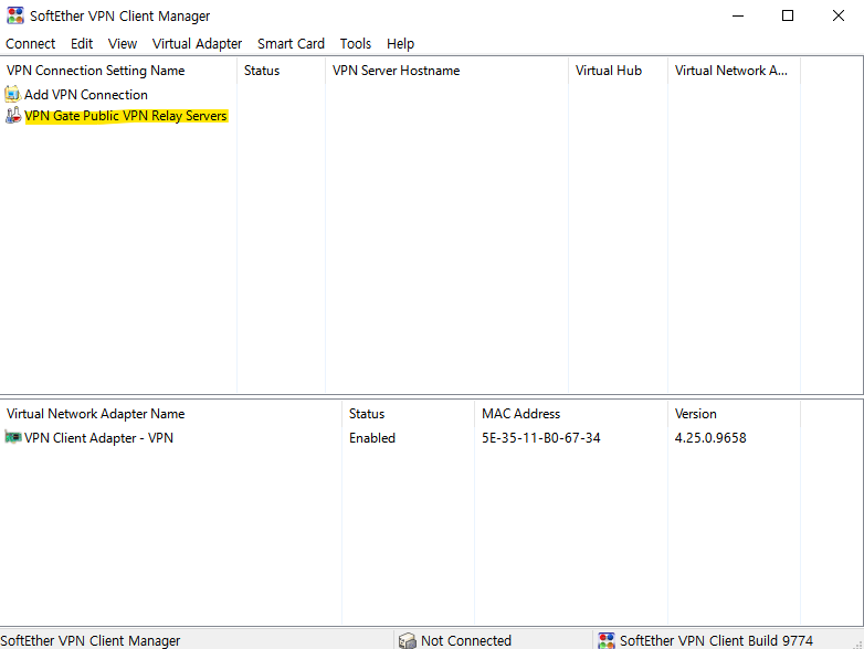▲실행 후 [VPN Gate Public VPN Relay Servers]를 더블클릭