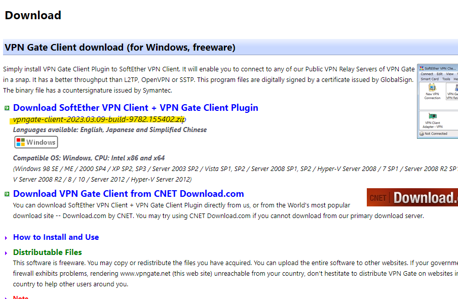 Download VPN Gate Client download (for Windows, freeware) Simply install VPN Gate Client Plugin to SoftEther VPN Client. It will enable you to connect to any of our Public VPN Relay Servers of VPN Gate in a snap. It has a better throughput than L2TP, OpenV