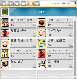 아크는 8개 스킬 강화 코어 모두 유효코어이다.