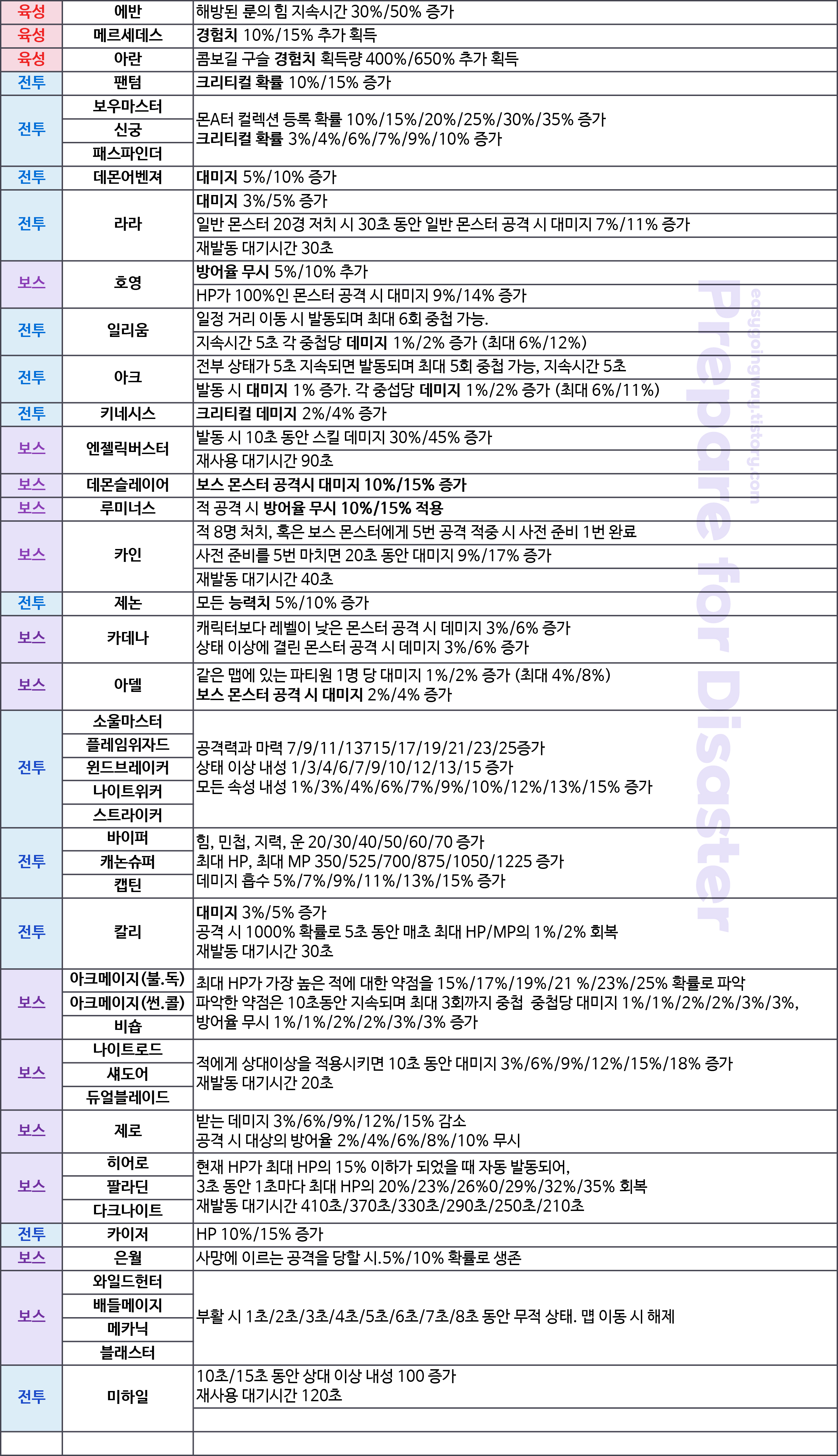 | 데몬어벤져 | 보스 공격 시 데미지 4 / 5% 증가. |