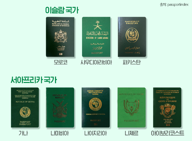 전 세계적으로 4가지 표준 색상의 여권만 사용중이므로,