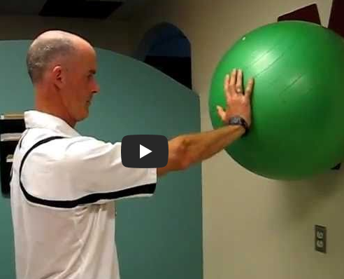 -짐볼 등 가벼운 공을 벽에 대고 팔을 90도 외전 상태로 유지하면서 시작.