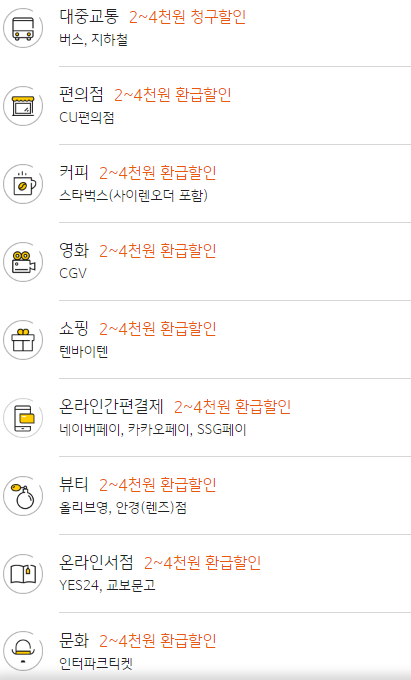 전월실적 40이상 : 약국, 대중교통, 미용, 배민, 컬리, 이케아 다 범용성